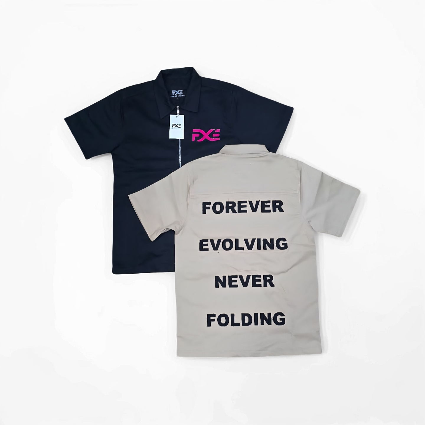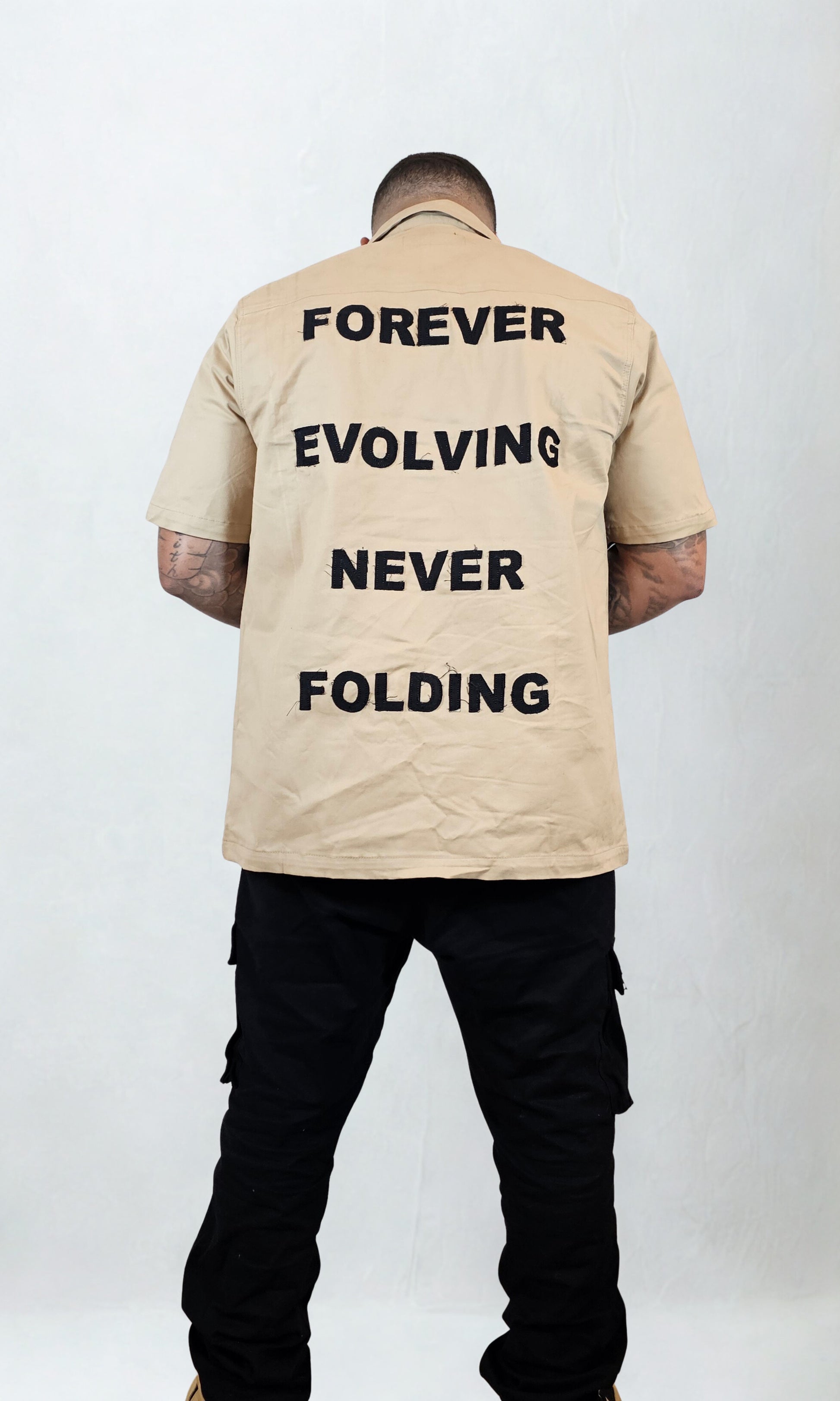 Heavy-Weight Metal Zipper Shirt — a modern hybrid of rugged functionality and refined structure. This collared shirt features a full-length metal zipper with Distressed logo on the front and distressed slogan on the back!